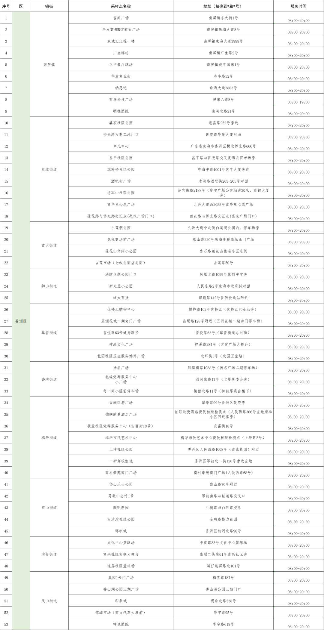 珠海109个社会便民免费核酸采样点(珠海109个社会便民免费核酸采样点在哪里)