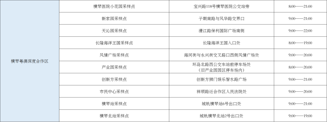 核酸采样点开放情况及服务时间可能随疫情防控动态调整,采样点开放情况及服务时间请以各镇街现场为准。