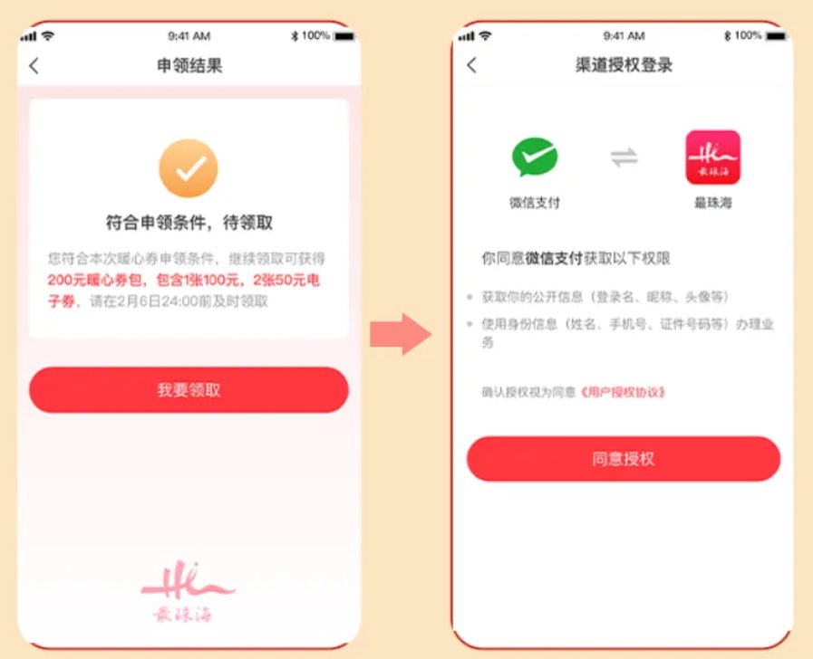 ③领券。符合派发条件的暖心券用户完成实名认证后,通过微信渠道进行领取,共发放200元“暖心券”包(100元一张,50元两张电子暖心券)。