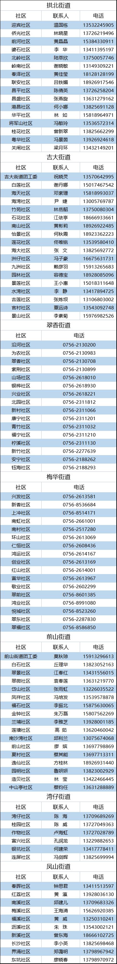 珠海香洲区部分镇街、社区防疫志愿者服务报名电话汇总
