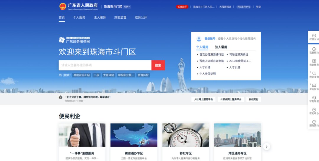 1月17日起斗门区政务服务大厅实行零接触、网上办、预约办办理机制
