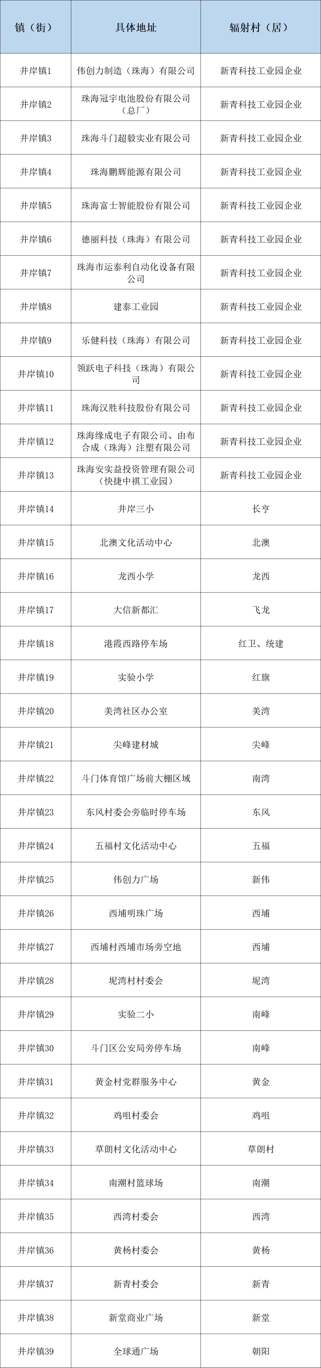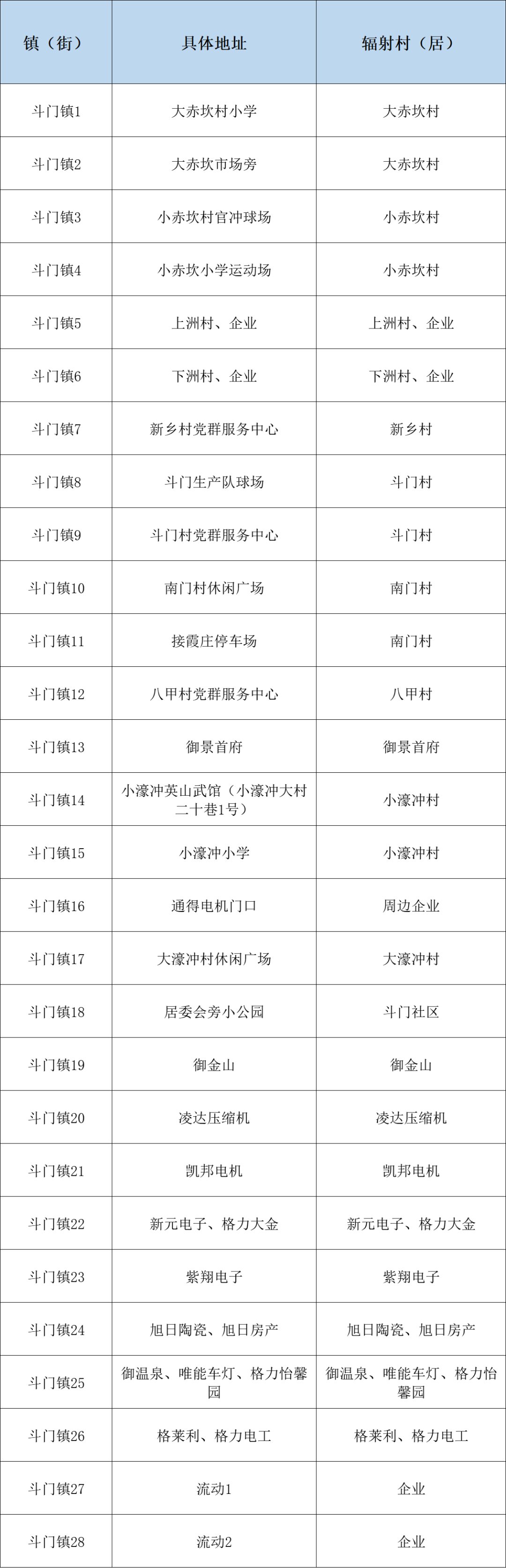 斗门镇核酸采样点(28个)