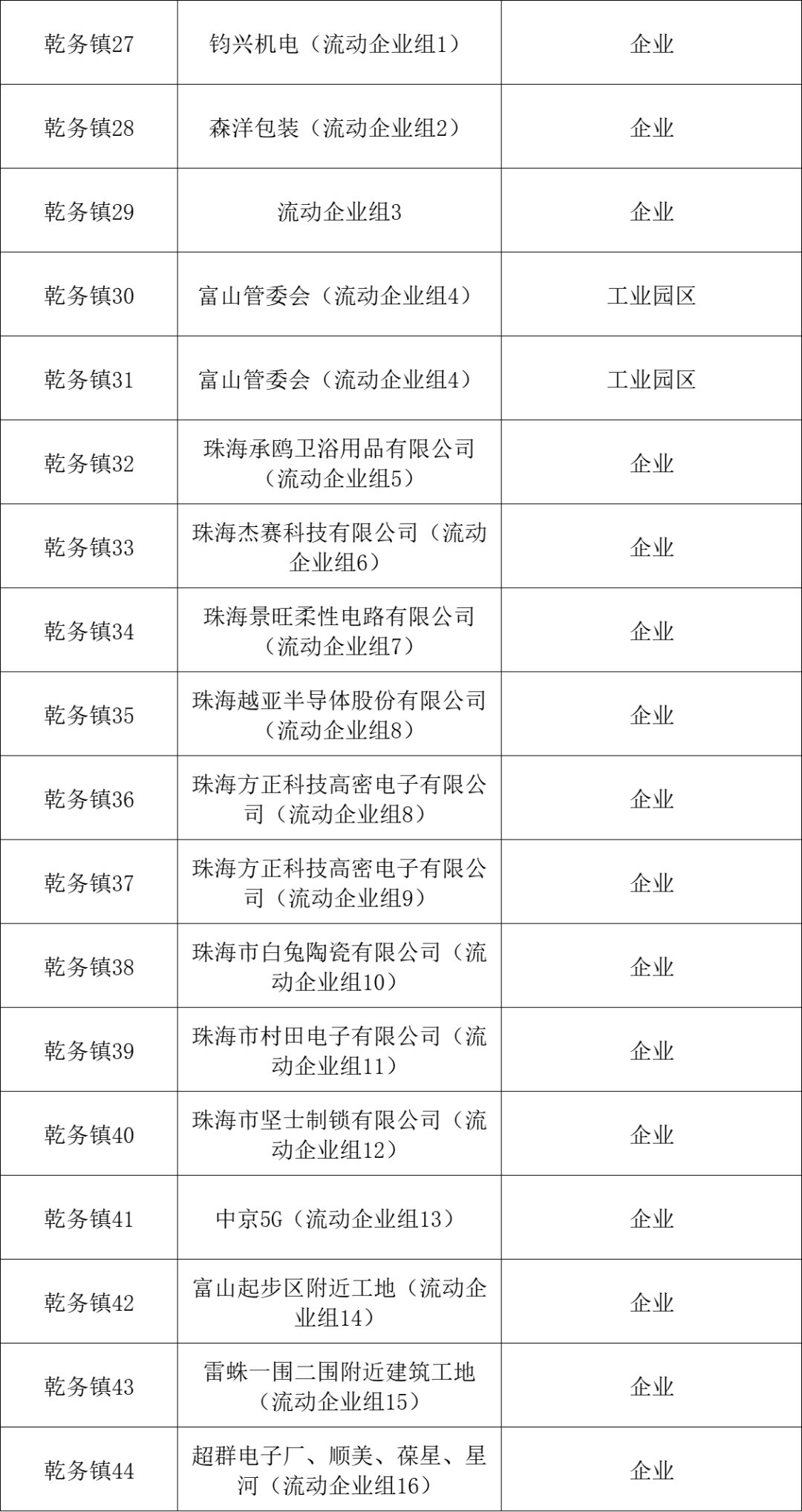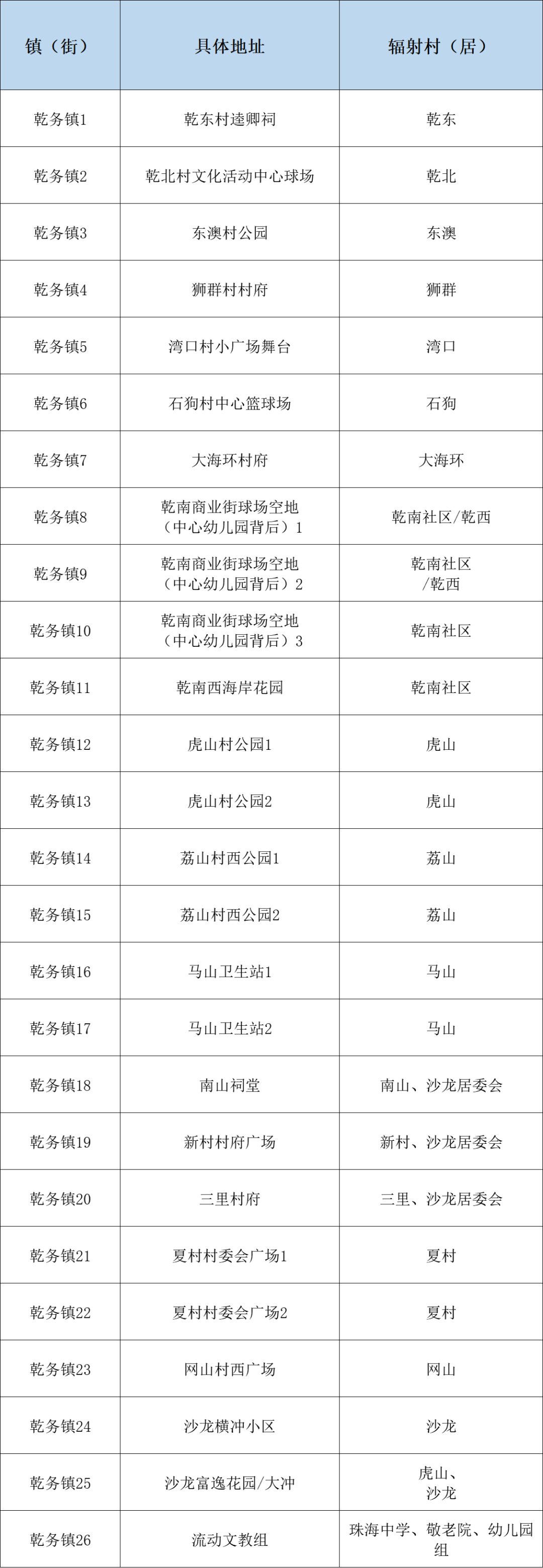 乾务镇核酸采样点(44个)