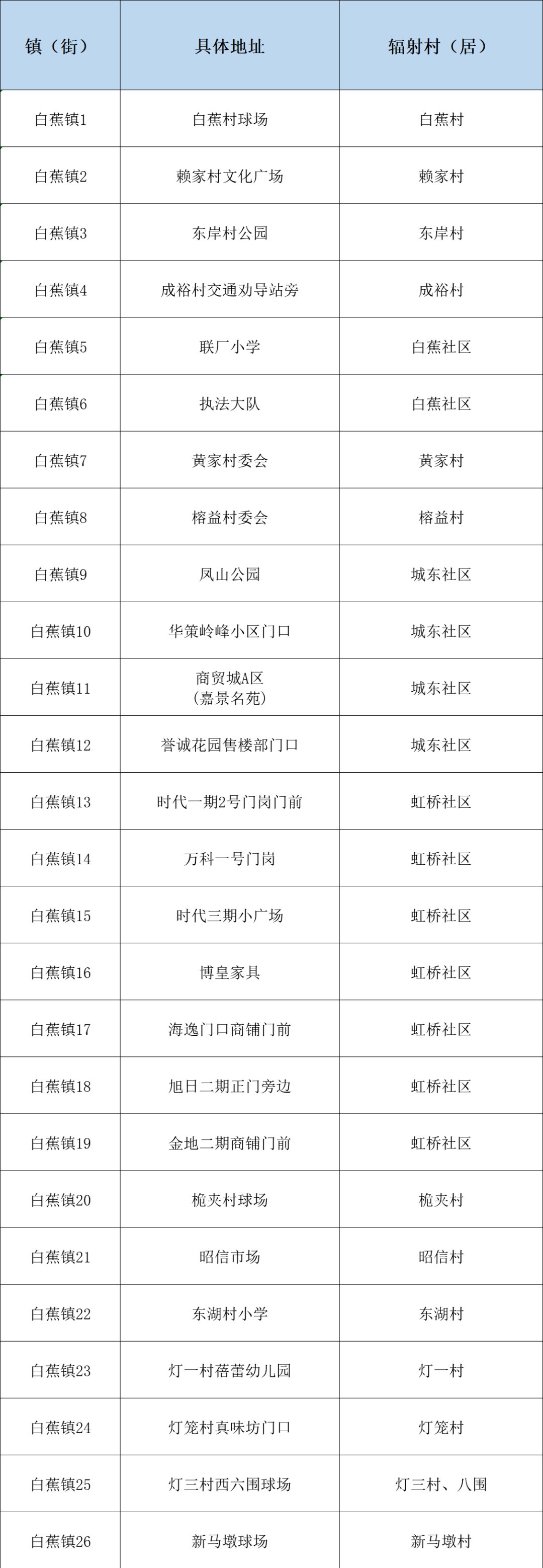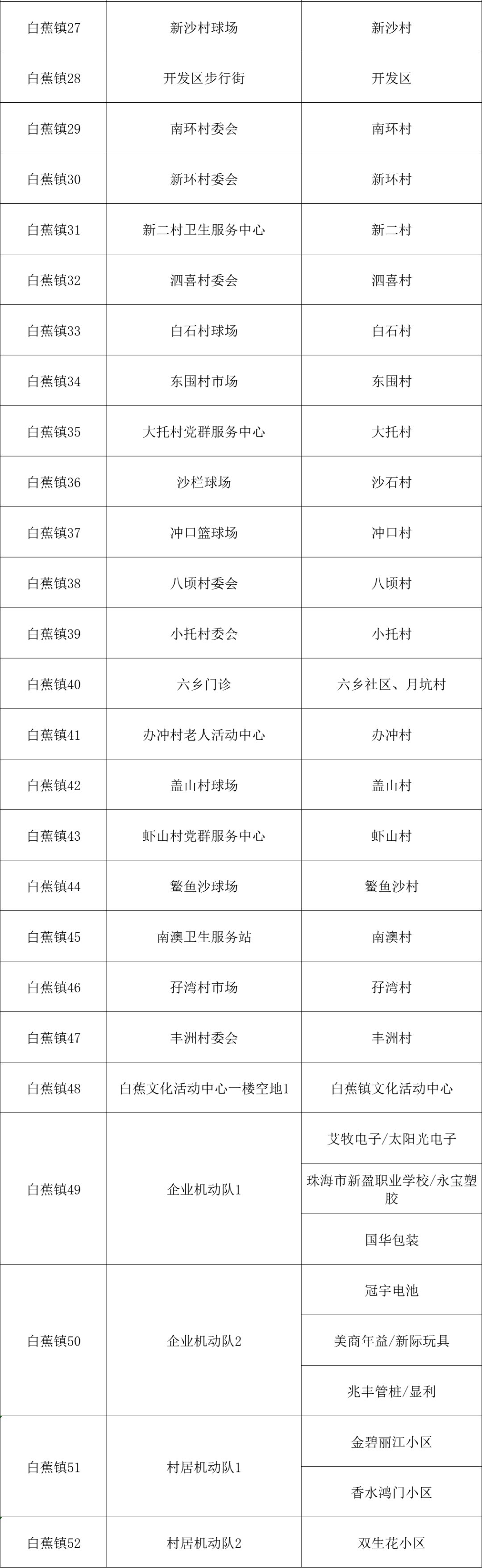 白蕉镇核酸采样点(52个)