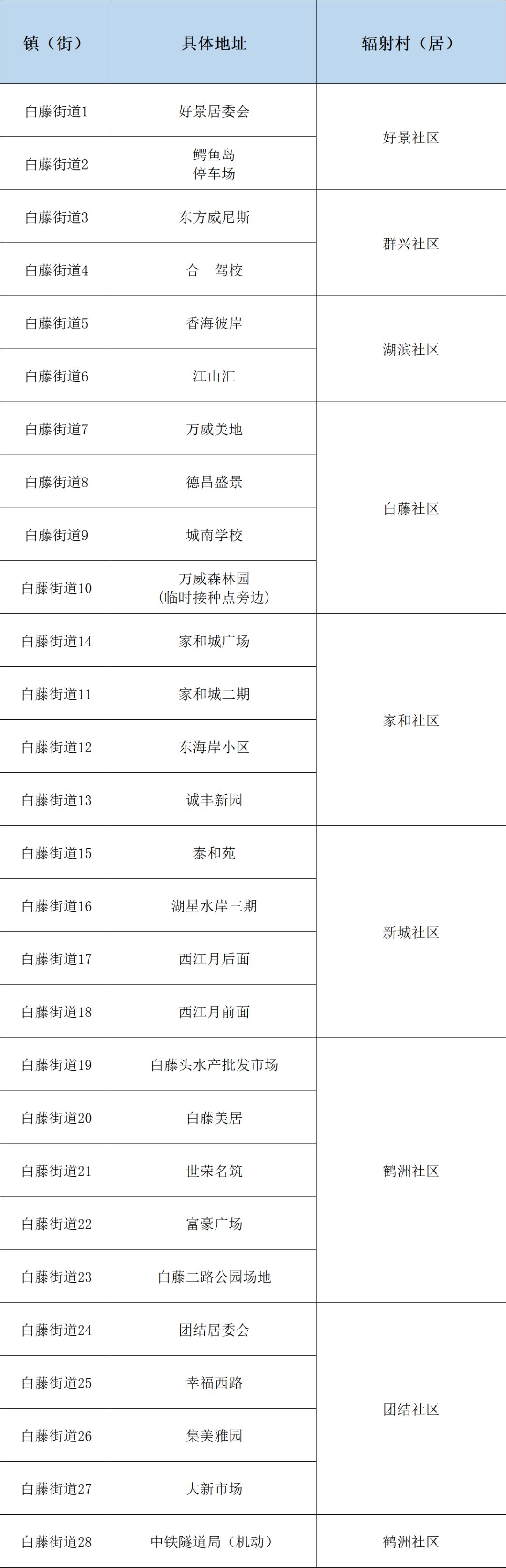 白藤街道核酸采样点(28个)