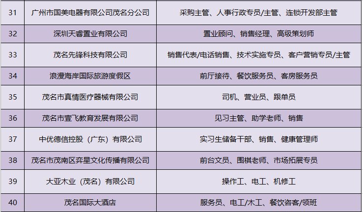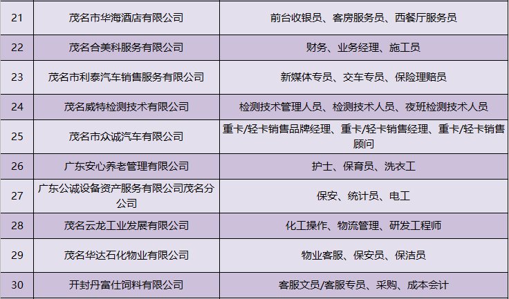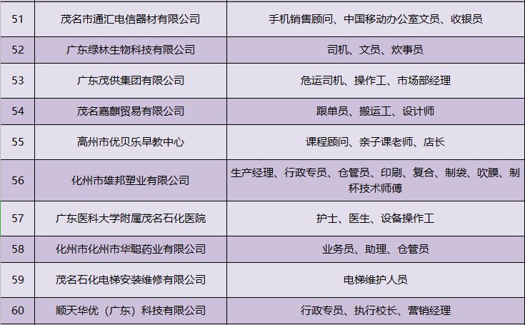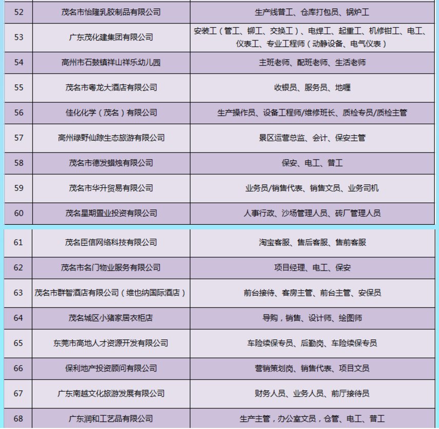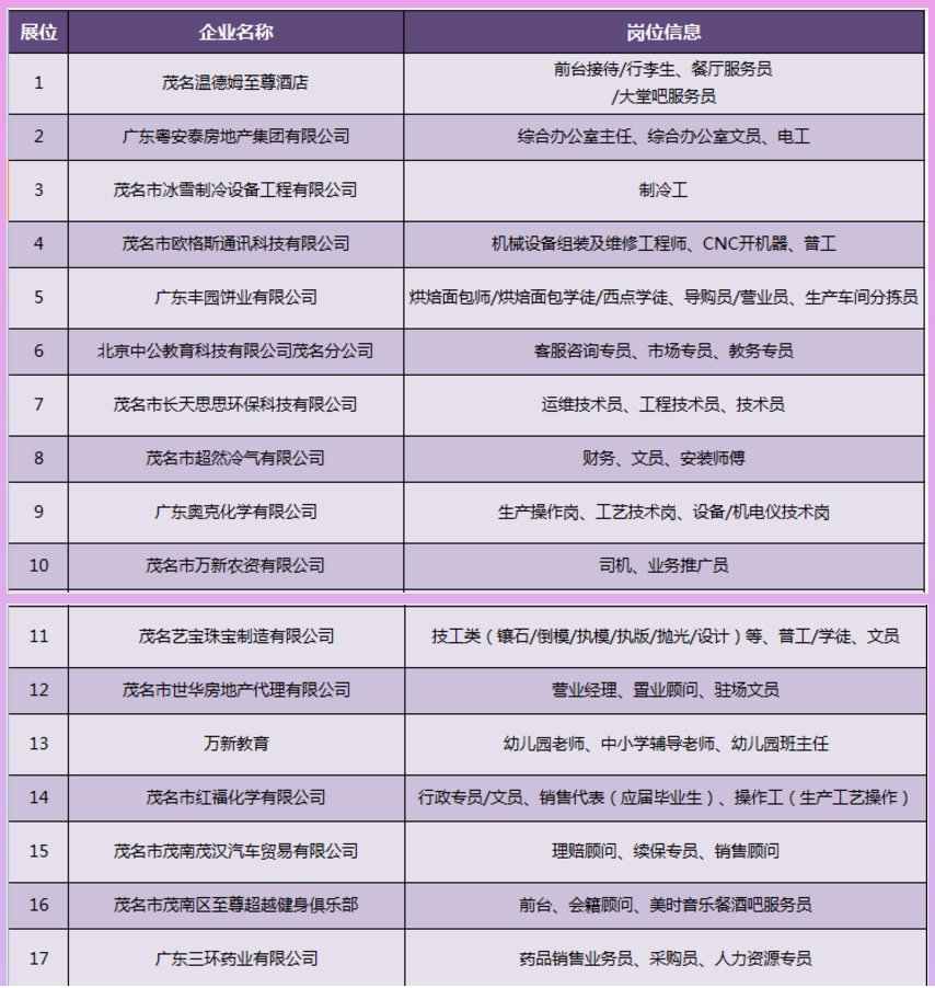 其中,3月3日(星期三)上午9:00-12:00,茂名市人社局将在茂名市人力资源市场(市人社局二楼)举办茂名市2021年“南粤春暖 茂名-珠海联合”专场招聘会。