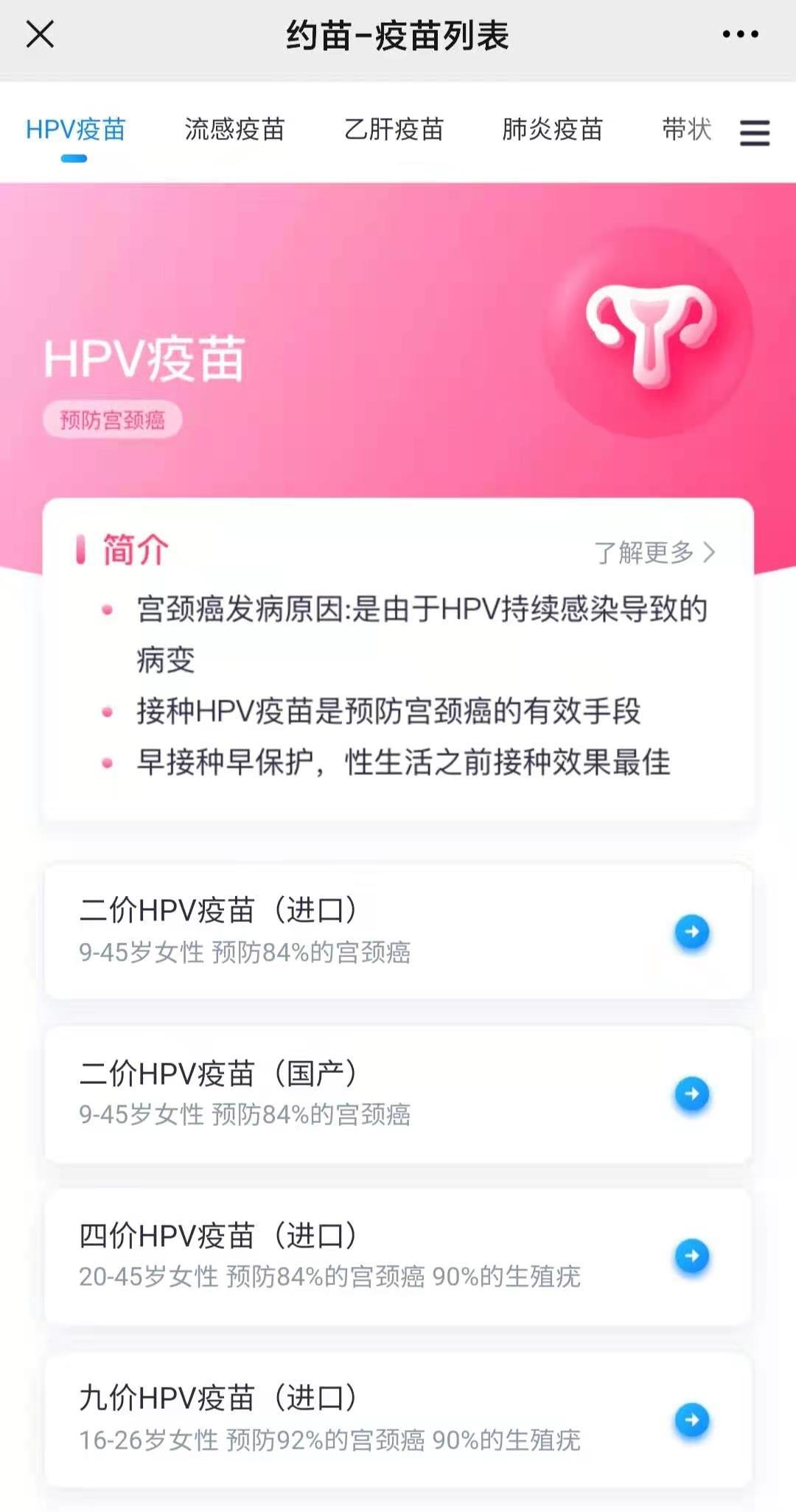约苗平台上的预约流程
