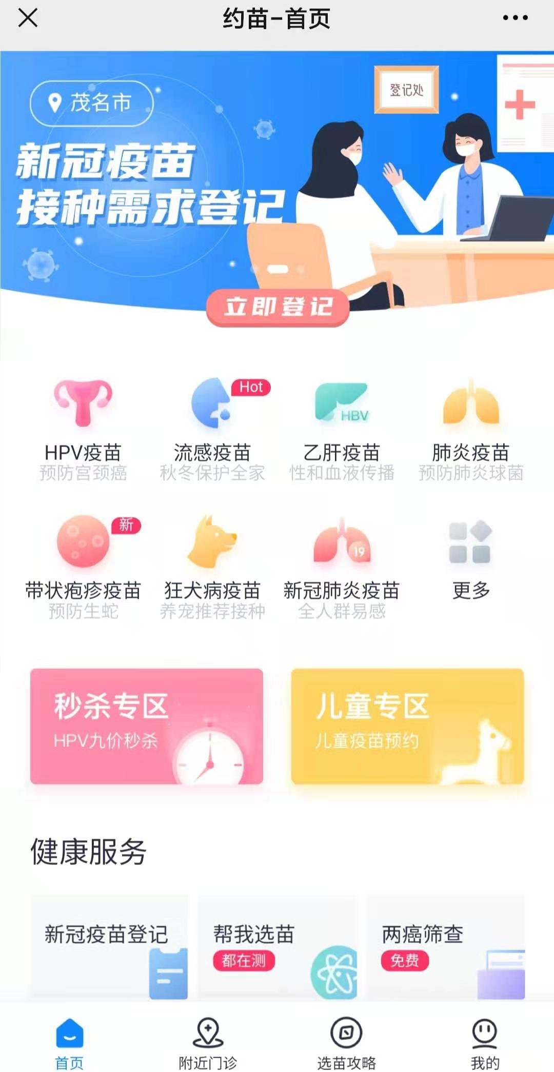 3.定位在“茂名市“选择疫苗种类