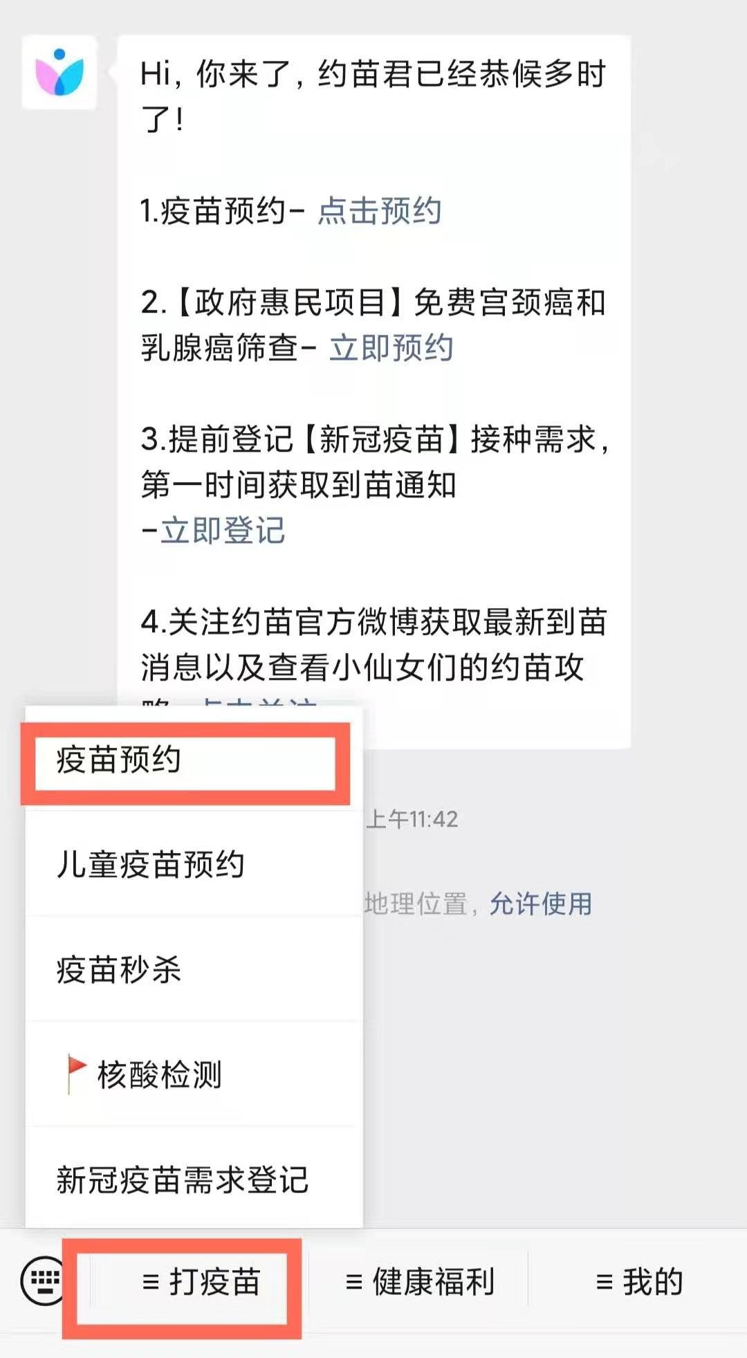 1.微信扫描二维码,或者是搜索“约苗”公众号