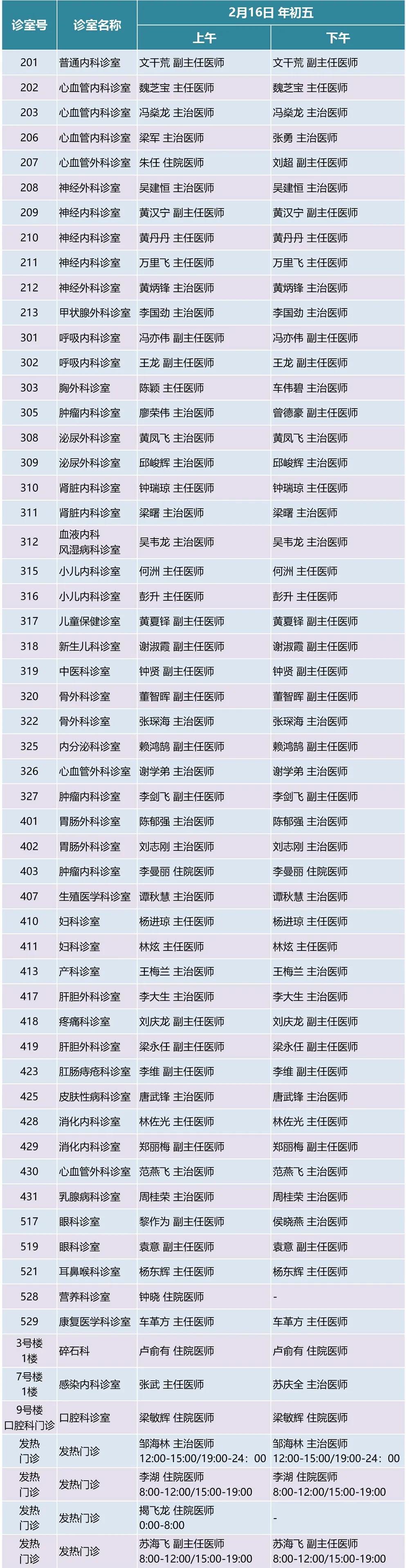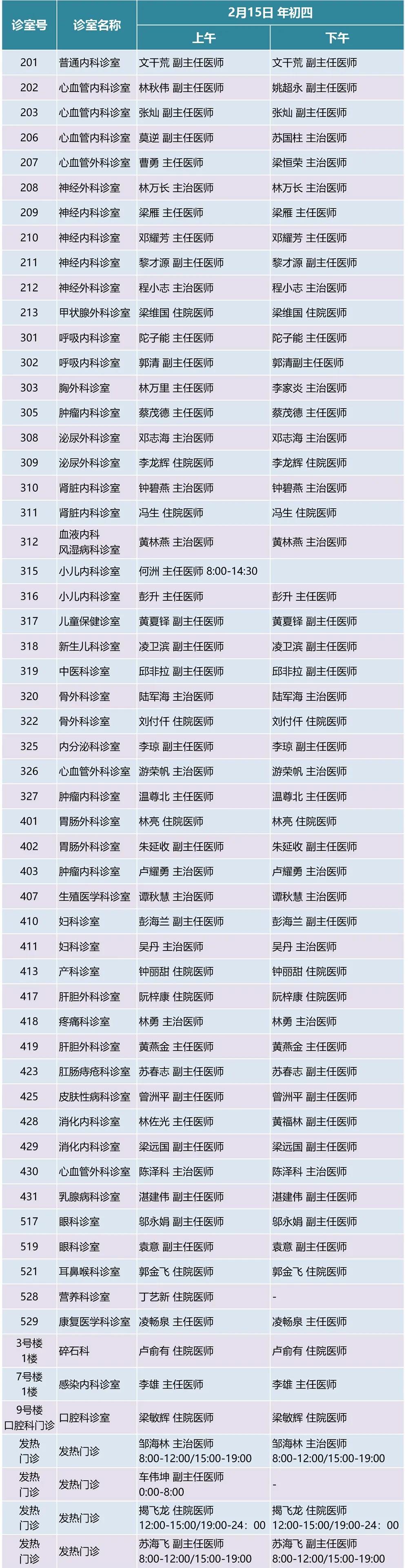 15日(年初四)起,全部科室正常出诊。
