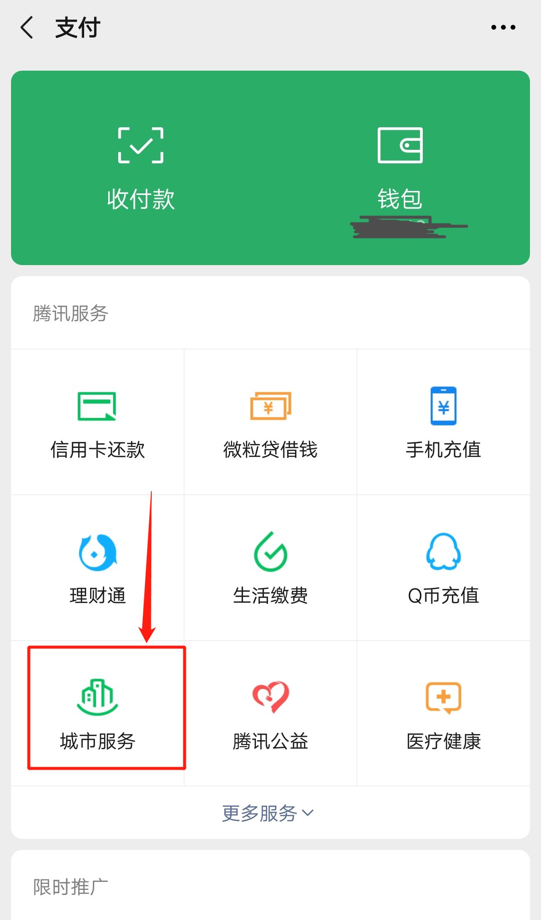 第二步:在【腾讯服务】中找到【城市服务】。