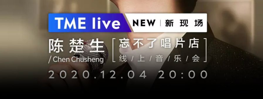 2020年12月第一场演唱会来啦~12月4日20:00,TMElive新现场致敬首唱,欢迎光临「忘不了唱片店」,陈楚生线上音乐会,听音乐才子深情开嗓。