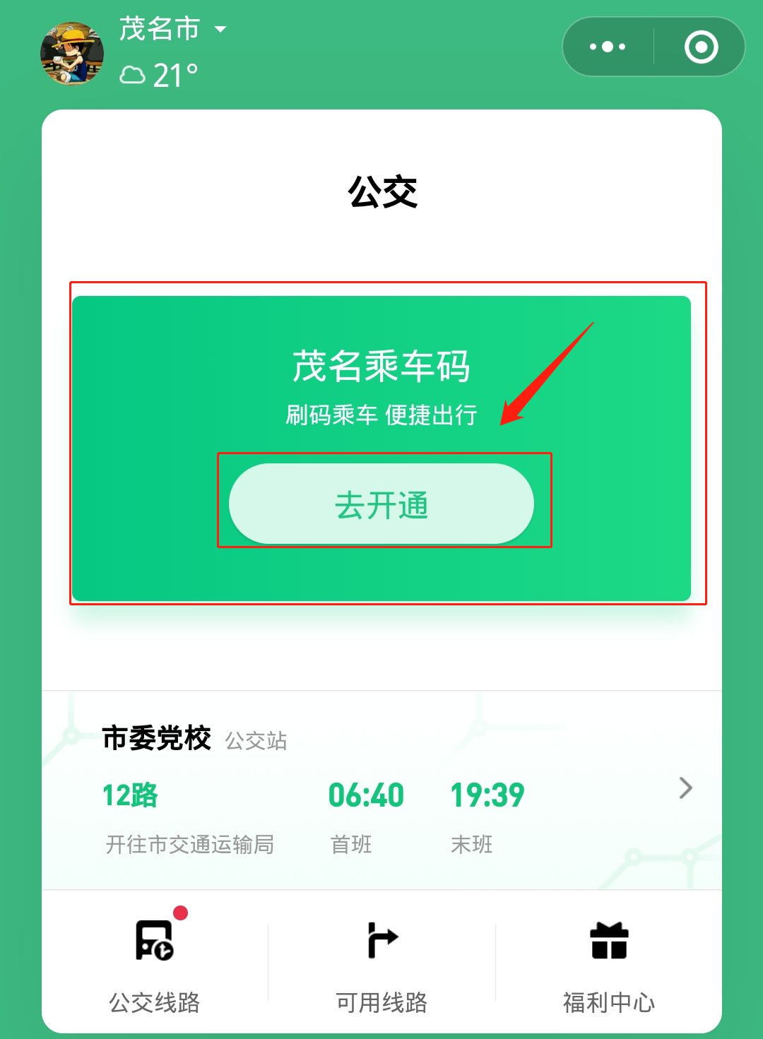 第二步:看到【茂名乘车码】后点击“去开通”。
