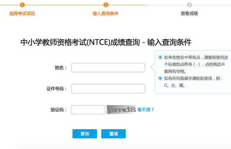 第二步:进入成绩查询入口,输入姓名、证件号码、验证码等信息,然后就可以查询到教师资格证考试成绩。