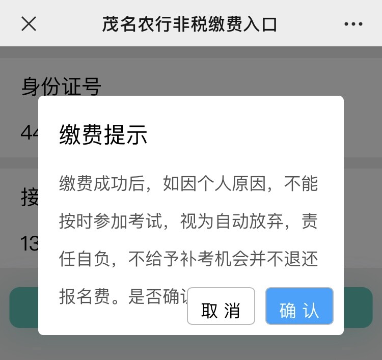 用手机进入“茂名农行非税入口”点击“2020年茂名普通话考试缴费入口”。