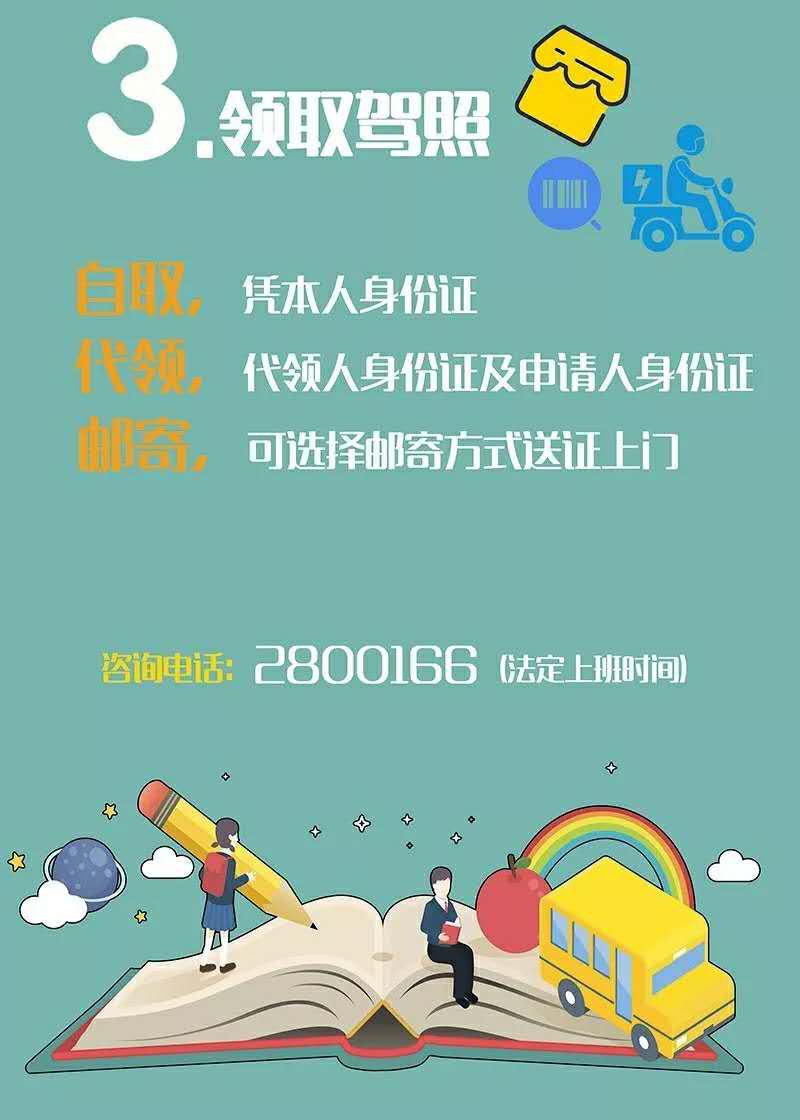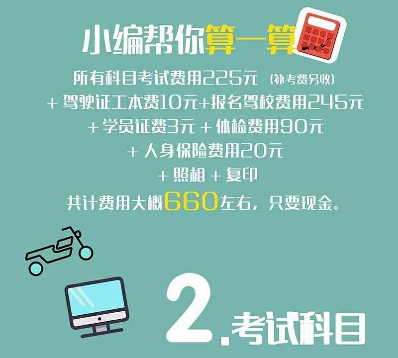报考(【材料+项目+费用(只收现金)】——考试科目(科目一、二和三)——领取驾照(自取、带领、邮寄)