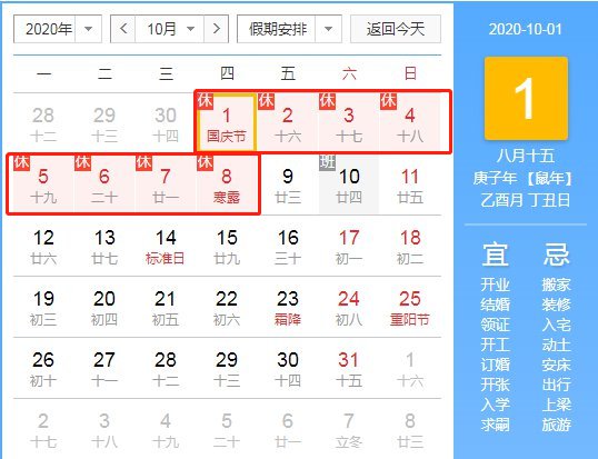 10月1日——10月8日(八天)