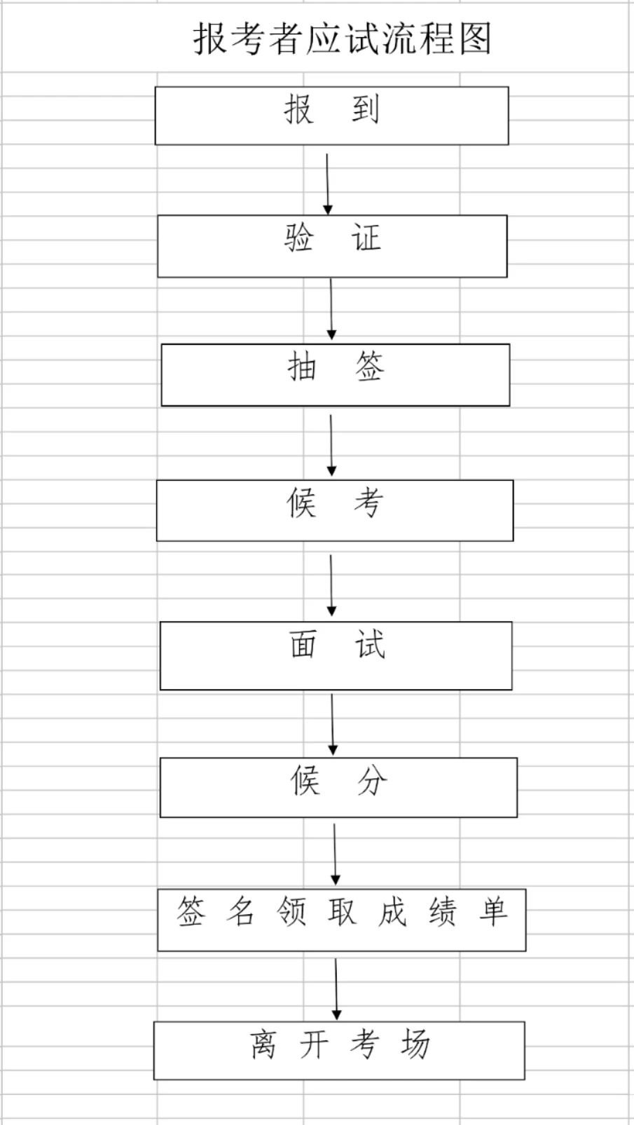 →⑥候分:报考者在候分室等待面试成绩(须服从考官对其评定成绩)。