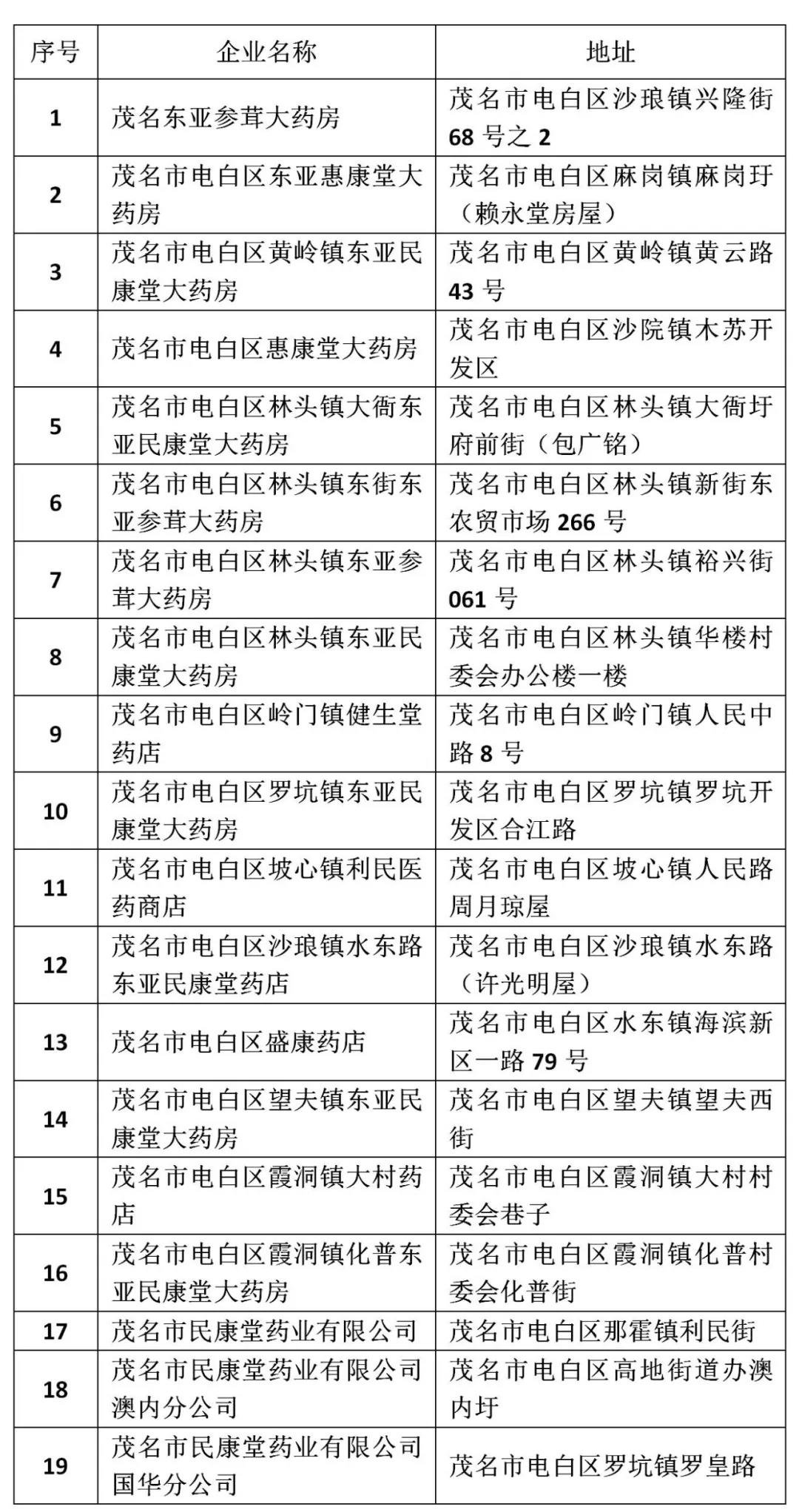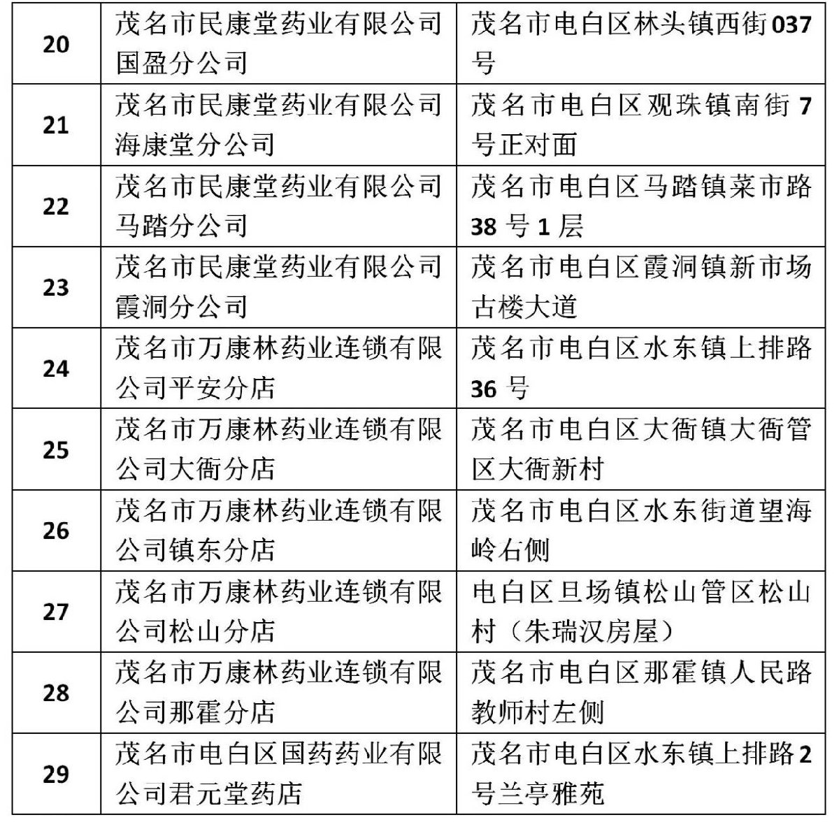 电白区辖区的公民凭身份证到广东东亚药业股份有限公司、茂名万康林药业连锁有限公司和茂名市电白区国药药业有限公司君元堂药店购买口罩。