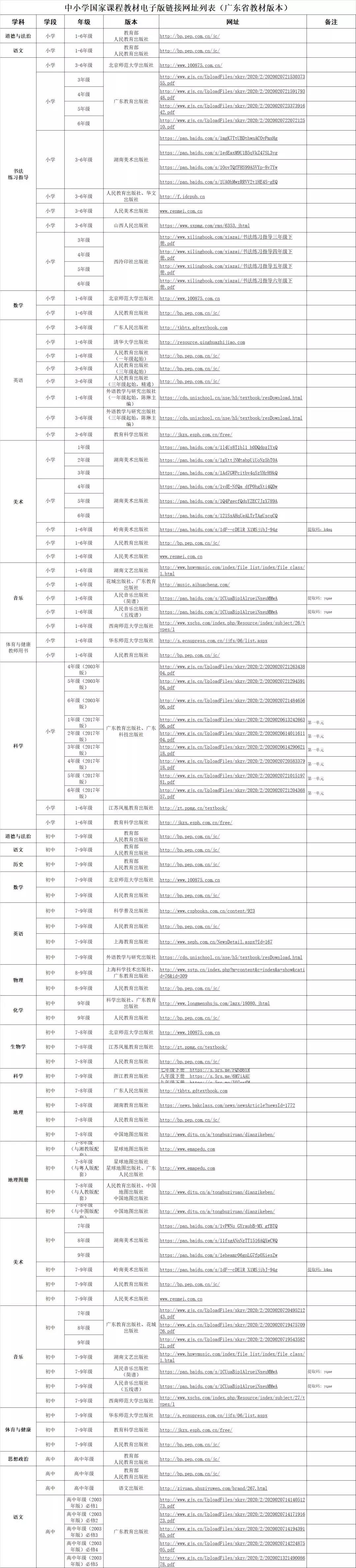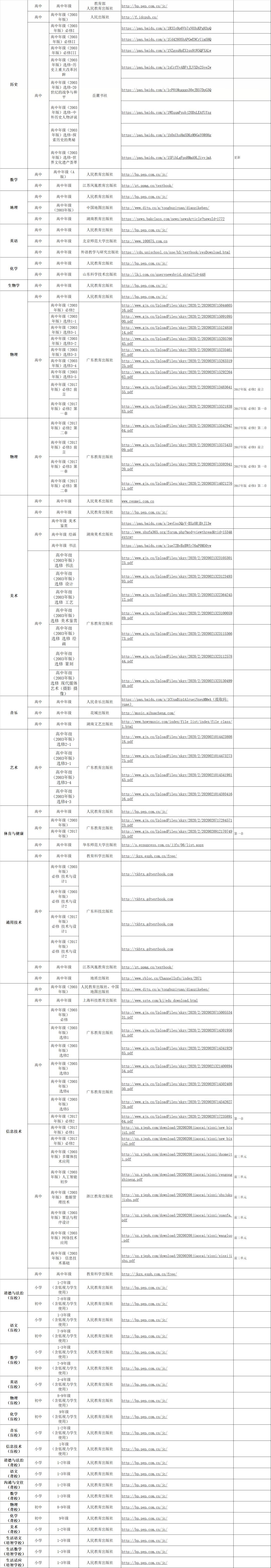 点击下载【中小学国家课程教材电子版链接网址列表(广东省教材版本)】