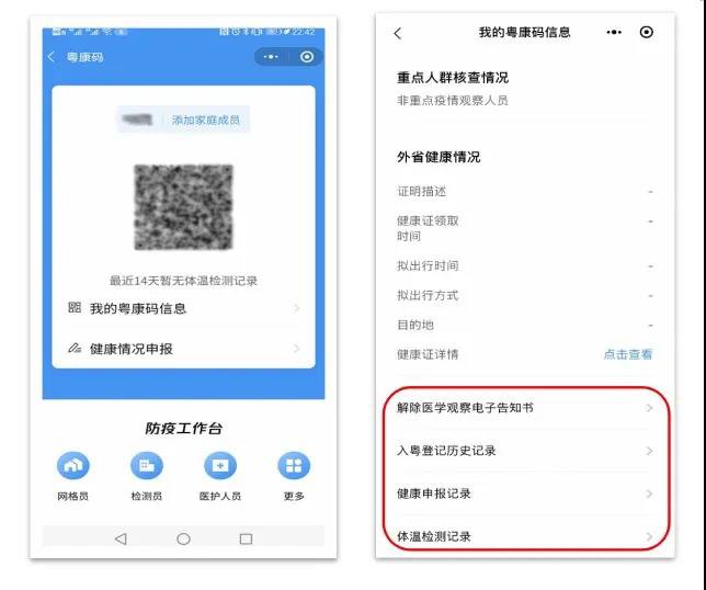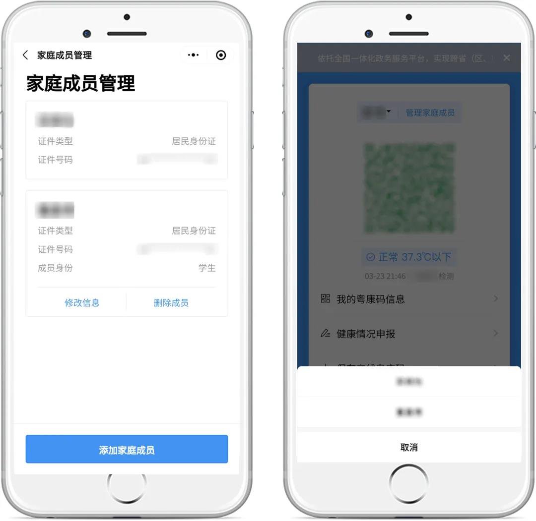 市民可以通过“我的粤康码信息”查看更多信息,还可通过“添加家庭成员”对家庭成员的粤康码进行管理。