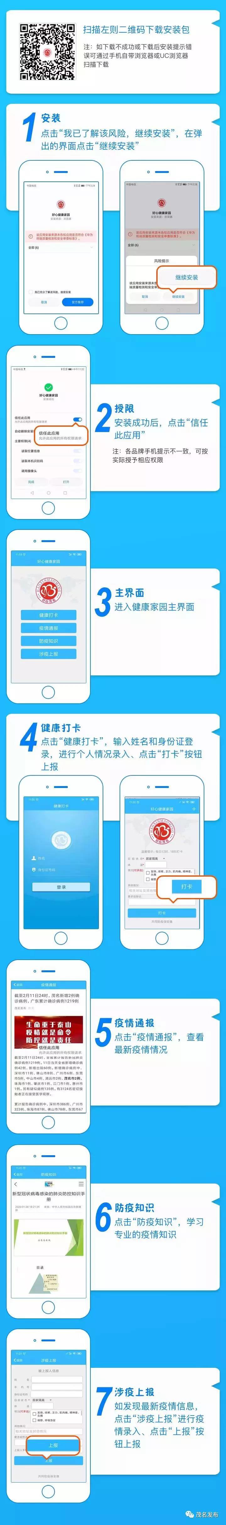 目前,茂名已在全市推广使用“好心健康家园”APP,使用安卓系统的市民可下载APP安装使用,用IOS系统的可以关注“茂名公安”微信公众号,直接使用。