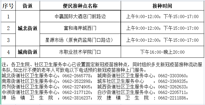 江城区5月24日新冠疫苗便民接种服务点安排如下: