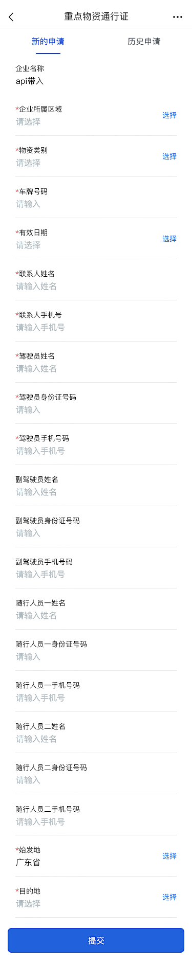 填写信息页面,其中带星的为必填项。不带星的为非必填项。录入界面如下: