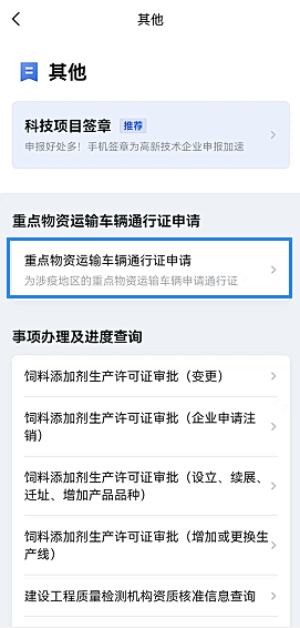 3、“重点物资运输车辆通行证申请”