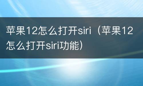 苹果12怎么打开siri(苹果12怎么打开siri功能)