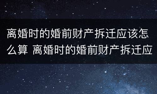 离婚时的婚前财产拆迁应该怎么算 离婚时的婚前财产拆迁应该怎么算呢