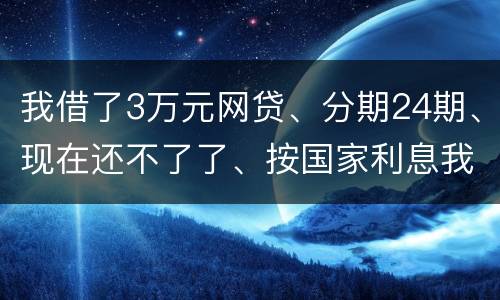 我借了3万元网贷、分期24期、现在还不了了、按国家利息我要承担多少钱