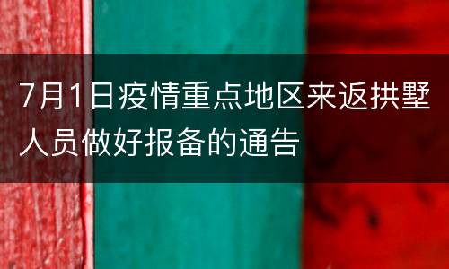 7月1日疫情重点地区来返拱墅人员做好报备的通告