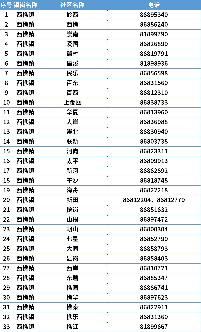 西樵镇村、社区新冠病毒疫苗咨询电话