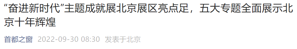 “奋进新时代”主题成就展北京展区看到,北京展区凸显首善标准,通过首都功能不断优化提升、京津冀协同发展取得新突破、经济高质量发展迈出坚实步伐、人民群众生活品质明显提升、首个“双奥之城”熠熠生辉五大专题,展现出北京十年来的深刻转型、历史变革、巨大变化与崭新面貌。