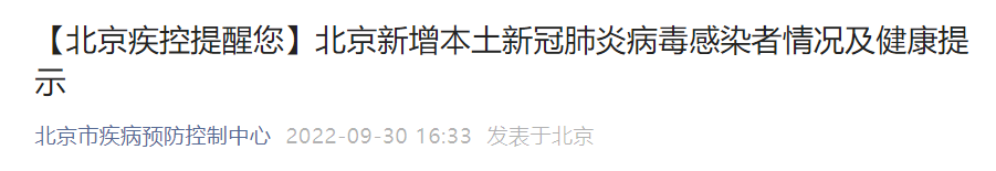9月30日0时至15时北京新增本土感染者情况及健康提示