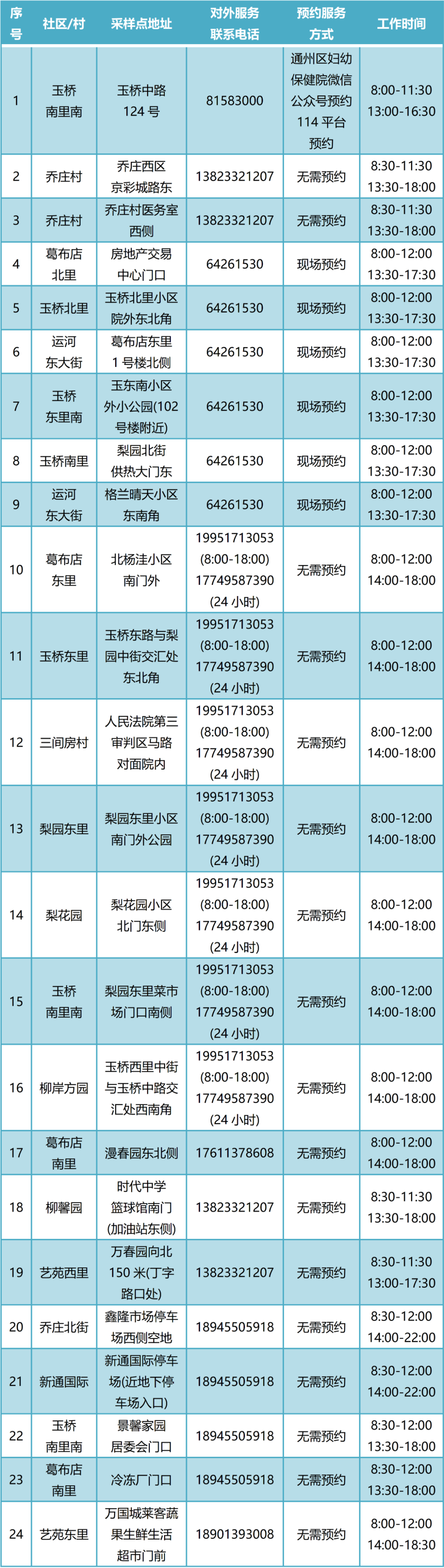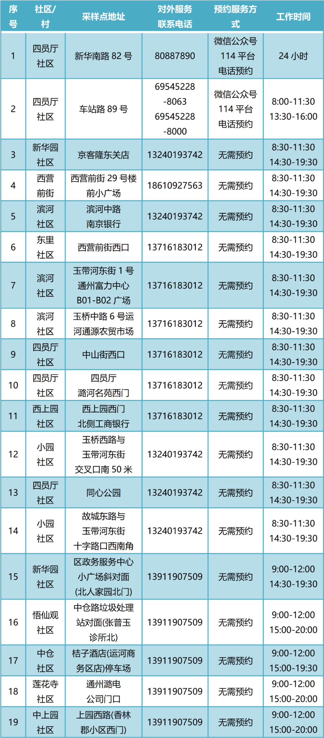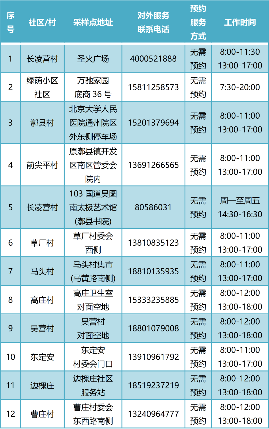 北京通州常态化核酸采样点时间地址电话预约(最新411个)