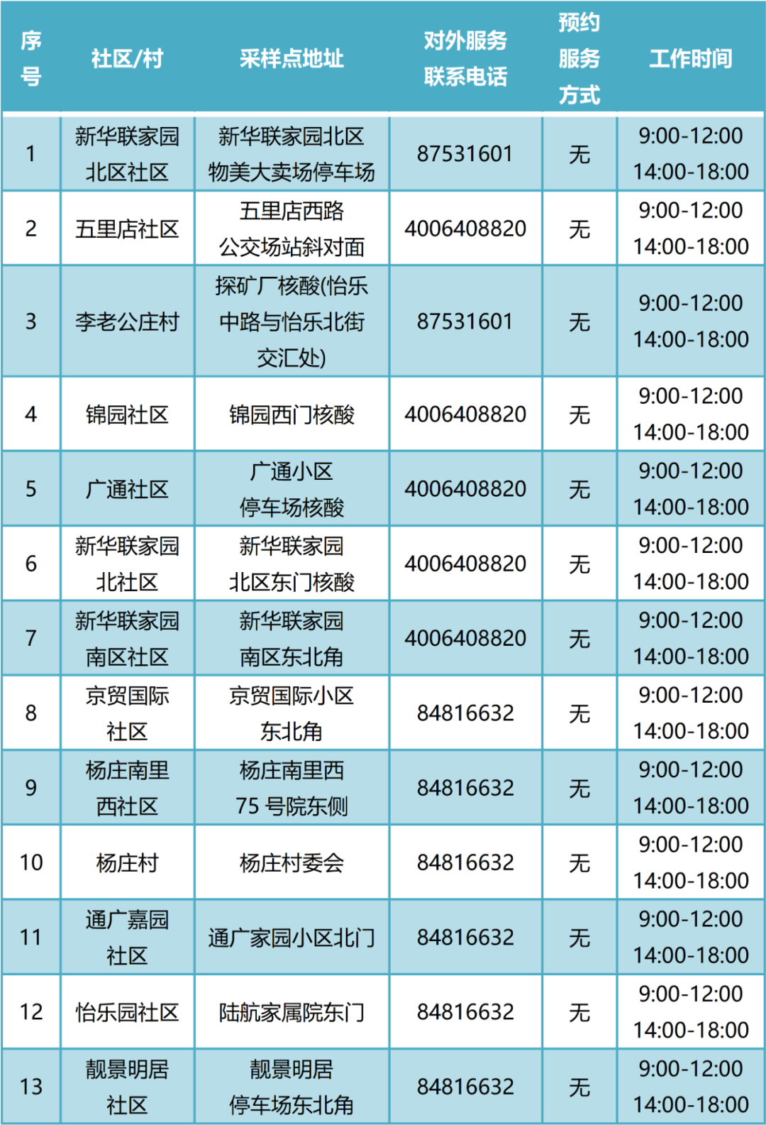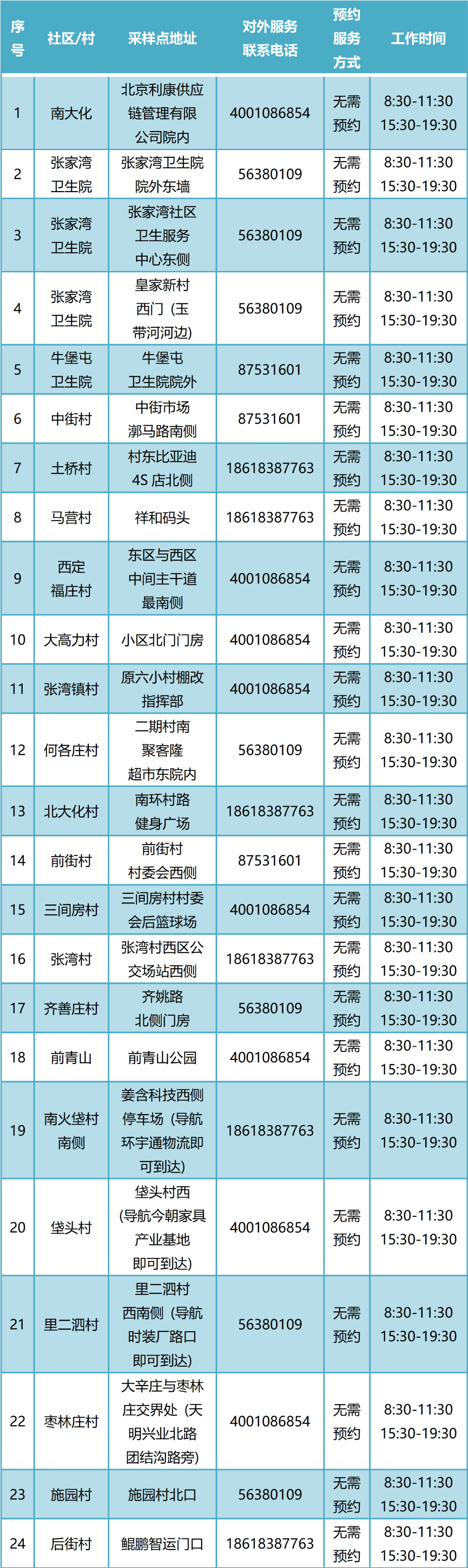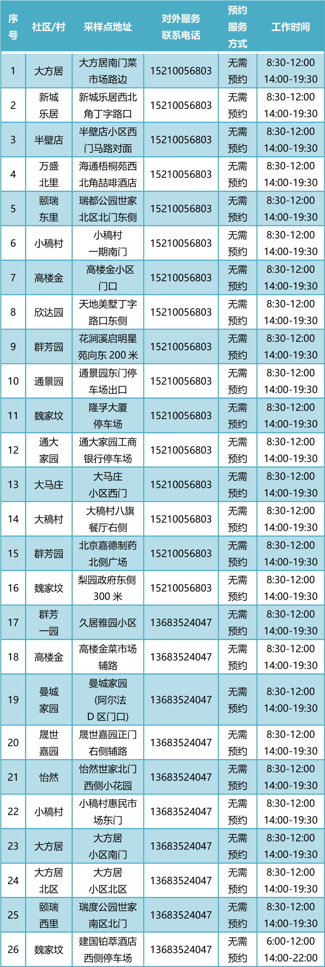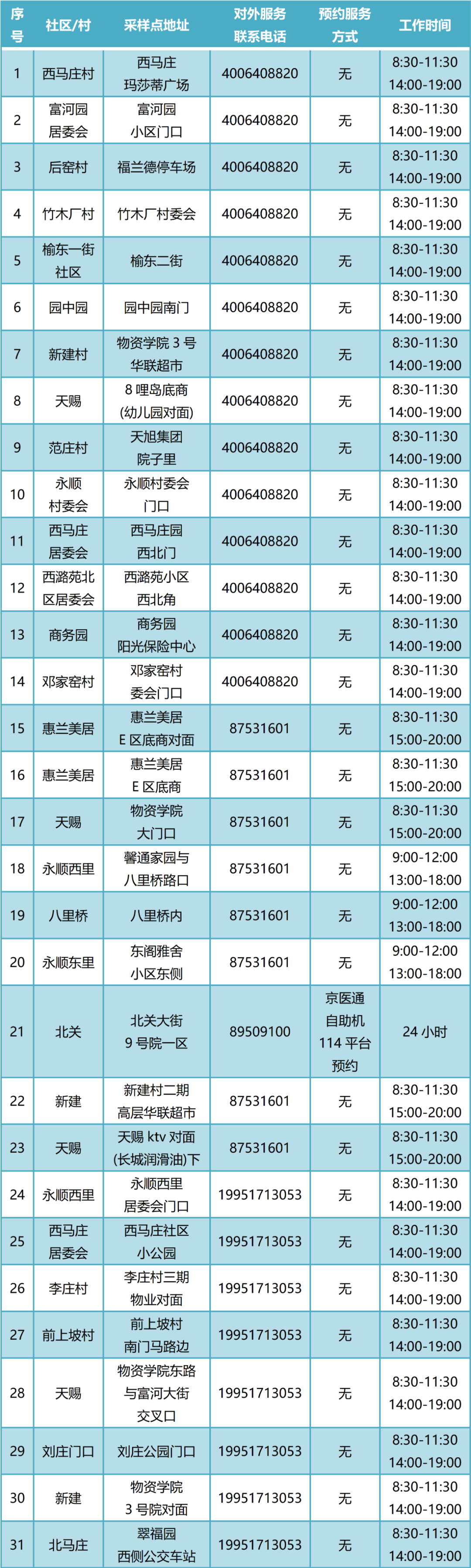 北京通州常态化核酸采样点时间地址电话预约(最新411个)
