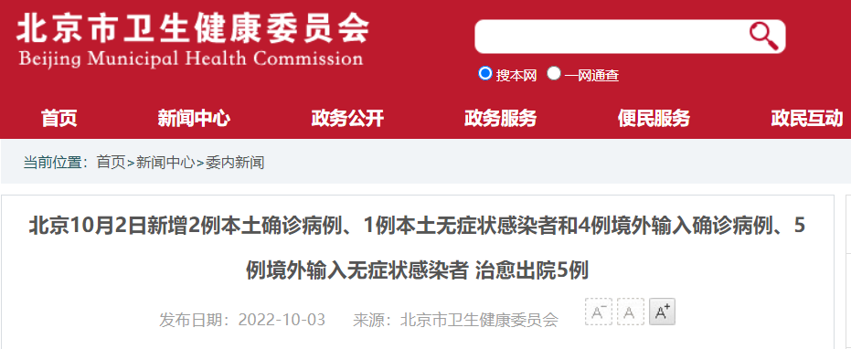 10月2日0时至24时北京新增2例本土确诊和1例无症状