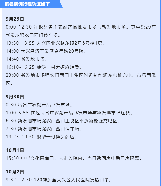 10月2日15时至10月3日15时北京丰台区新增感染者活动轨迹