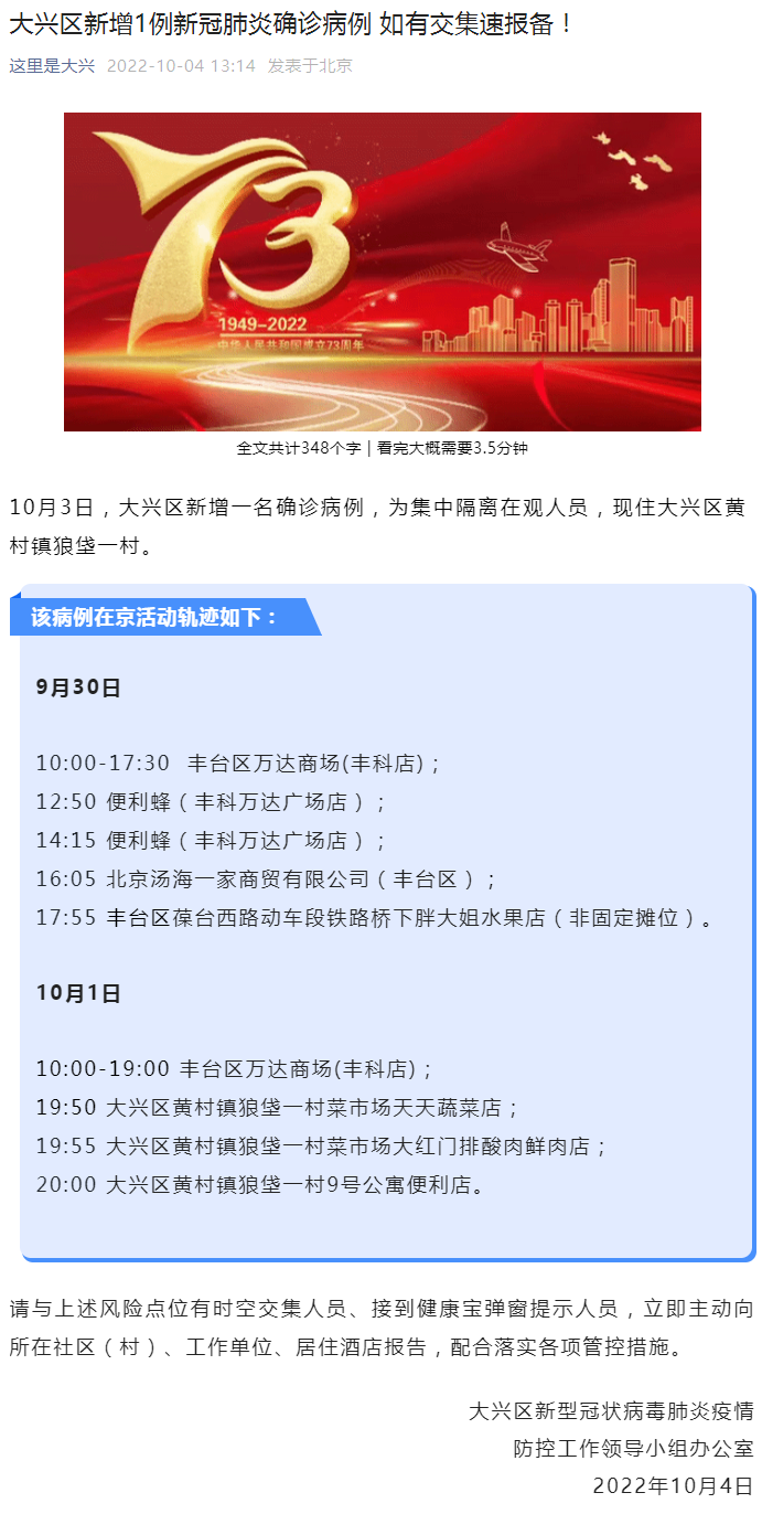 10月3日北京大兴区新增1例确诊病例风险点位公布