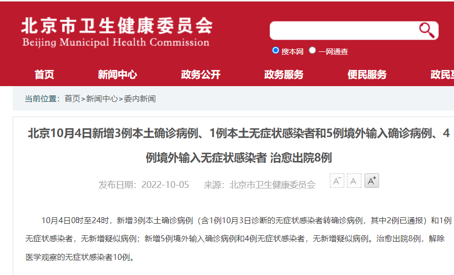 10月4日0时至24时北京新增3例本土确诊病例 1例本土无症状感染者