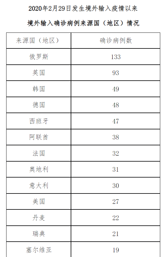 境外输入确诊病例