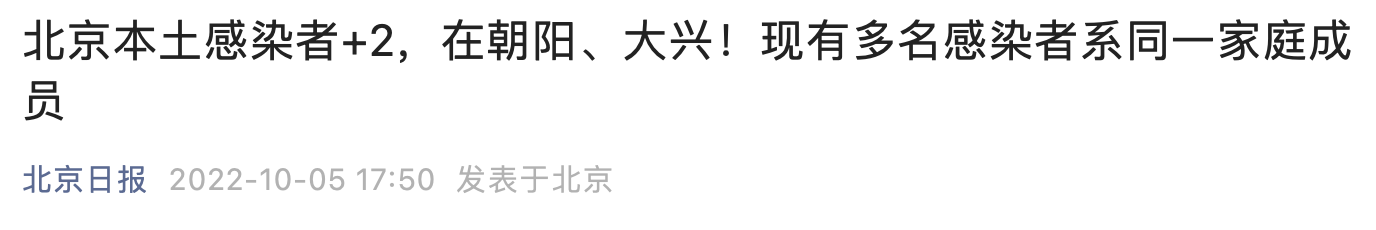 10月5日0时至16时和北京新增本土新冠肺炎病毒感染者2例