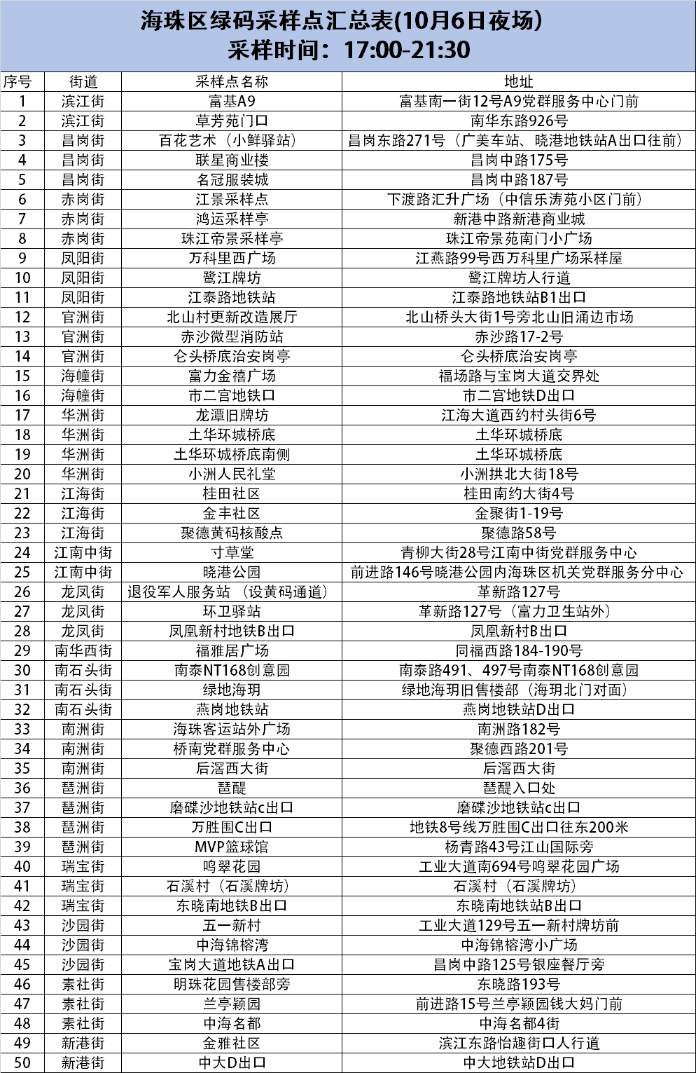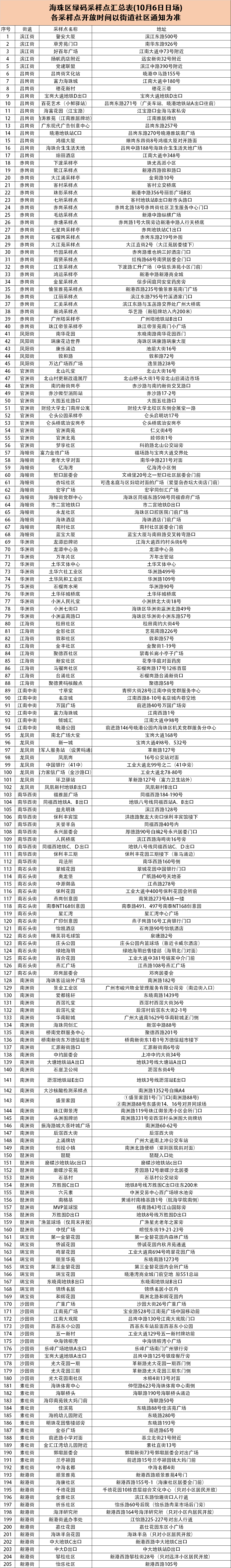 10月6日广州海珠区国庆核酸采样点 海珠区核酸临时采样点