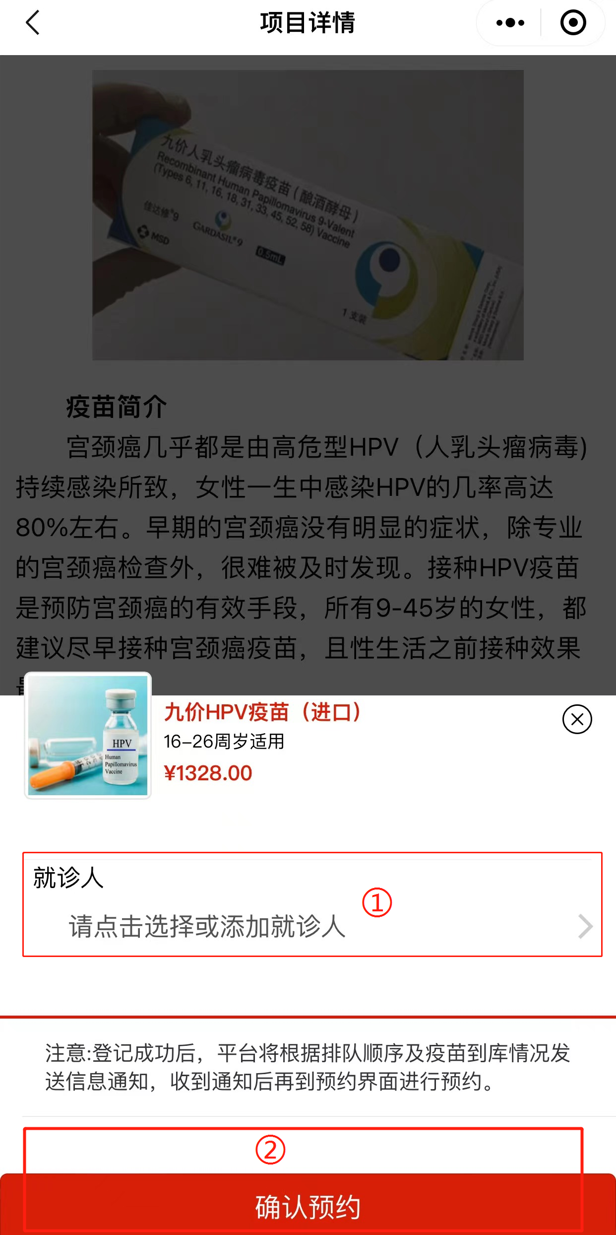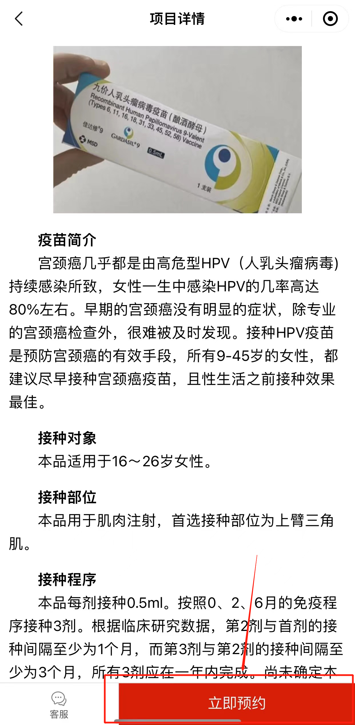 4.选择需要预约的疫苗“九价HPV疫苗(进口)”