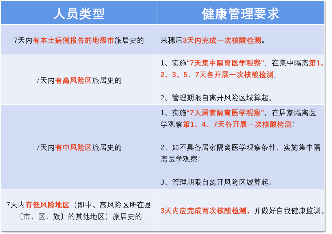来(返)穗人员需先判定个人所属情况看,从哪里来(返)穗?最近七天是否去过中高风险区域?并按不同情形的要求做好,健康管理+旅居史上报+居家健康监测,等要求。
