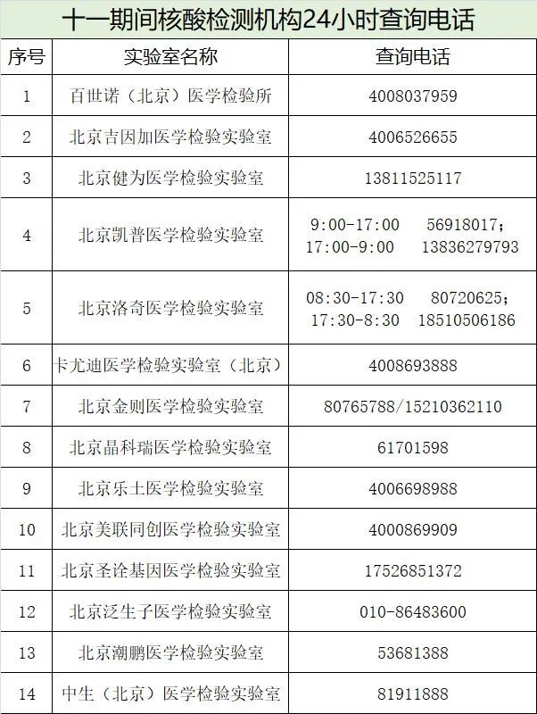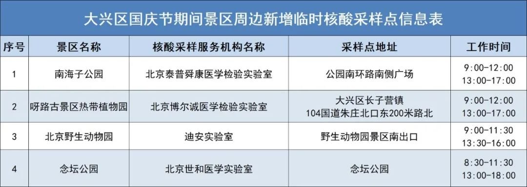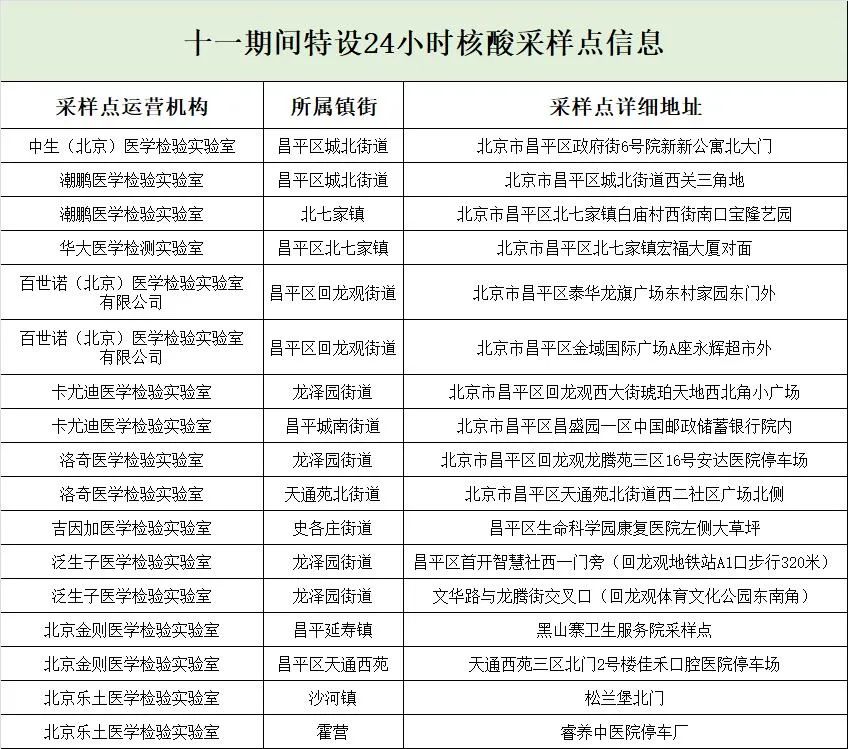 10月6日至7日北京核酸检测点采样时间调整(各区汇总)