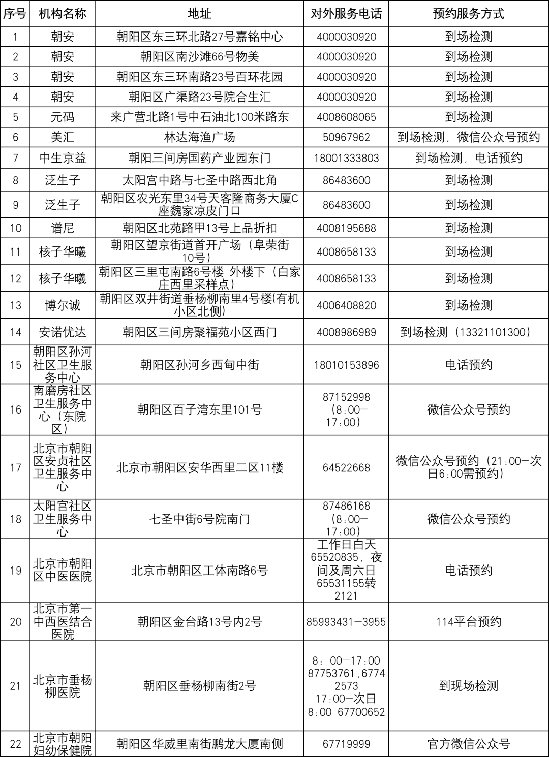除了常态化核酸检测,朝阳区目前有22家24小时核酸采样点,市民可就近检测。具体名单↓
