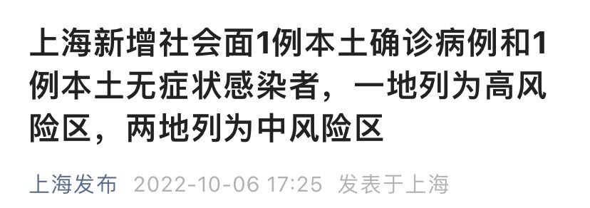 调整后,上海共有1个高风险区,11个中风险区,10个低风险区。